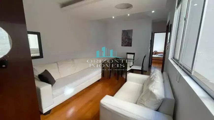 - Sala para 02 ambientes, com sofá, hack e mesa com 6 cadeiras. - 02 quartos sendo 01 com armários planejado. - Banho social com bancada em granito, box em blindex e espelho. - Cozinha montada com armários planejados, sob e sobre bancada em granito, fogão e geladeira. - Área de serviço com máquina de lavar roupas. Piso: - Sala e quartos em laminado de madeira. - Cozinha, banho e área de serviço em cerâmica. * 01 vaga livre semi coberta. Prédio semi- revestido, com portão eletrônico, interfone, gás canalizado, hall social decorado e jardins.