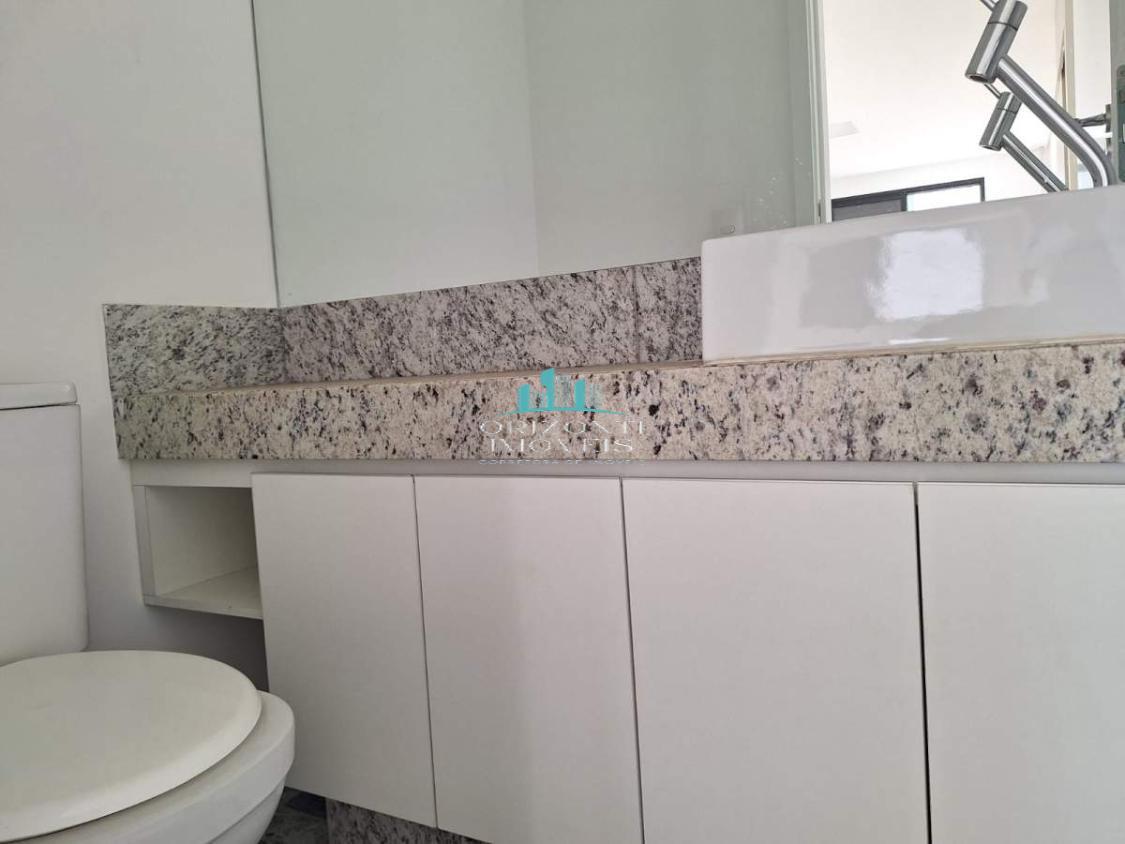 porcelanato. Ampla sala com piso em porcelanato, rebaixamento em gesso, cozinha americana com bancada em granito e armários, ampla sala, varanda e lavabo. Área
